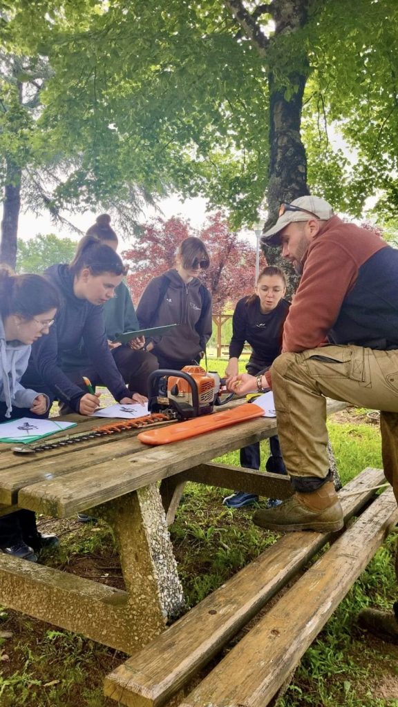 Le mardi 27 mai 2025, dans le cadre d’un échange interformation, les BP Aménagements Paysagers du CFAA-CFPPA du Lot ont initié les CP SAEZ – Soigneurs Animateurs d’Etablissements Zoologiques – aux outils d’entretien des parcs animaliers. Une session pratique, enrichissante et collaborative, au cœur des compétences croisées entre soin animalier et gestion des espaces.